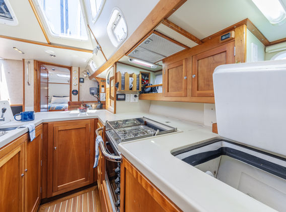 • Layout: Starboard-side galley with Corian countertop and ample storage